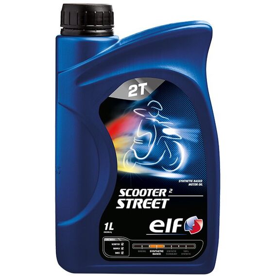 Olej Elf Scooter 2 Street 2T to następca bardzo popularnego oleju Elf Scooter 2 Rainbow 2T. Elf Scooter 2 Street 2T jest nowoczesnym, półsyntetycznym olejem, do 2-suwowych skuterów o od 50 do 125 cm3, zestawionym ze specjalnie wyselekcjonowanych bazowych olejów syntetycznych i mineralnych oraz dodatków uszlachetniających zalecanym do silników 2-suwowych nowej generacji. Olej Elf Scooter 2 Street 2T zapobiega tworzeniu się osadów, nagarów i gwarantuje całkowitą ochronę silnika i zmniejszenie emisji zanieczyszczeń. Olej Elf Scooter 2 Street 2T dzięki swojej ultranowoczesnej koncepcji jest olejem, który znacznie przekracza wymagania następujacych norm JASO: FD – Smokeless (bardzo małe zadymienie); ISO-L: EGC/EGD – Anti-deposit-technology (zapobiega powstawaniu nagarów); API: TC. Olej Elf Scooter 2 Street 2T zaleca się stosować w układach z wtryskiem oleju, ale może być on również w klasyczny sposób mieszany wstępnie z paliwem (mieszanka 2 do 4% lub zgodnie z zaleceniami producenta silnika). Kompatybilny z paliwe