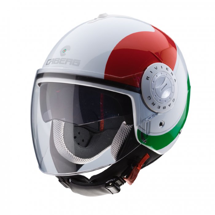 CABERG ШЛЕМ (ОТКРЫТЫЙ) С СОЛНЦЕЗАЩИТНОЙ ШТОРКОЙ МОДЕЛЬ RIVIERA V3 SWAY ITALIA ЦВЕТ БЕЛЫЙ/КРАСНЫЙ/ЗЕЛЕНЫЙ