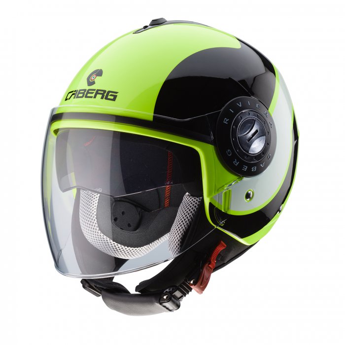 CABERG ШЛЕМ (ОТКРЫТЫЙ) С СОЛНЦЕЗАЩИТНОЙ ШТОРКОЙ МОДЕЛЬ RIVIERA V3 SWAY ITALIA ЦВЕТ ЧЕРНЫЙ/ЖЕЛТЫЙ FLUO