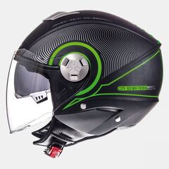 Nowoczesny kask z długą szybką oraz blendą przeciwsłoneczną. Kask spełnia normy EC/ONU 22.05.P, DOT (USA), Snell (USA) i NBR7417. Kask posiada kanaliki wentylacyjne w skorupie. Mikro zapięcie kasku z systemem szybkiego rozłączenia. Skorupa z systemem MT h