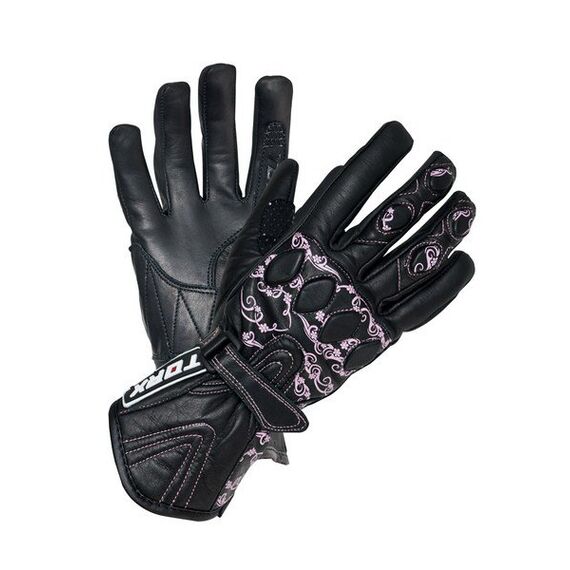Rękawice damskie wykonane z naturalnej skóry. Ochranicze gąbkowo neoprenowe są wszyte pod skórą. Górna strona rekawic posiada ozdobną grafikę, natomiast wewnętrzna częśc dłoni wykonana jest ze skóry z dodatkiem antypoślizgowego materiału z logiem TORX. Rękawice spakowanie w poręczne opakowanie Marka TORX pojawiła się na rynku początkiem 2000 roku. Od razu została pozytywnie przyjęta przez klientów i użytkowników produktów. Początkowo w ofercie TORX posiadał jedynie buty motocyklowe, które cechuje przystępna cena i bardzo wysoka jakość wykonania, ale idąc za ciosem producent wypuścił rękawice motocyklowe. Wszystkie rękawice produkowane są z naturalnej skóry oraz wysokich gatunkowo dodatków jak nici i ochraniacze