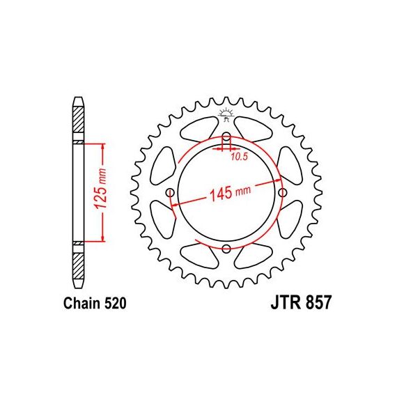 JT ЗВЕЗДА ЗАДНЯЯ 857 45 YAMAHA XT 600E '90-03, XT 660Z TENERE '91-00 (JTR857.45ZBK)* (ЦЕПЬ 520) ЦВЕТ ЧЕРНЫЙ - СМ. ТАКЖЕ 458845JT