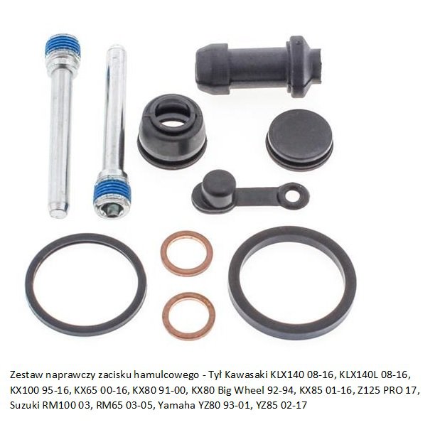 Zestaw naprawczy zacisku hamulcowego tylnego Kawasaki KLX140 08-17, KLX140G 17, KLX140L 08-17, KX100 95-17, KX65 00-17, KX80 91-00, KX80 Big Wheel 92-94, KX85 01-17, Z125 PRO 17, Suzuki RM100 03, RM65 03-05, Yamaha YZ80 93-01, YZ85 02-17