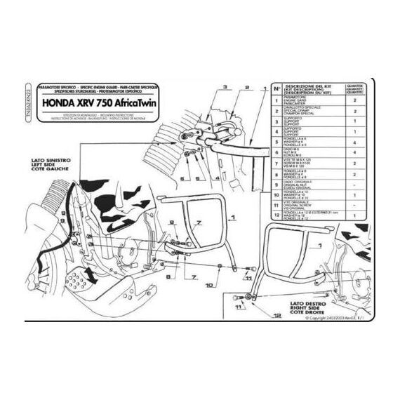 KAPPA БОКОВАЯ ЗАЩИТА ДВИГАТЕЛЯ HONDA XRV 750 AFRICA TWIN (TN362)